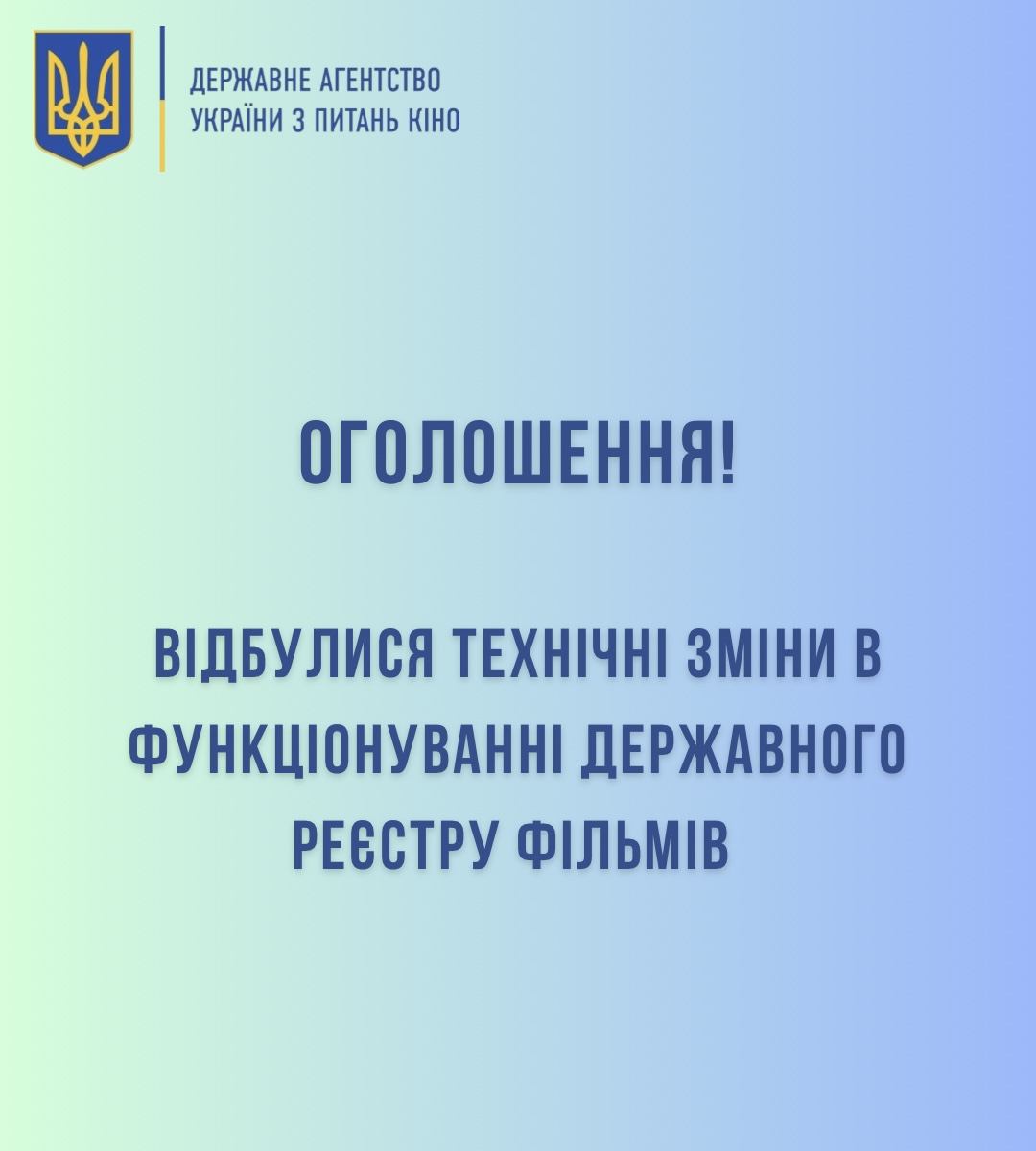 Інформуємо про технічні зміни у функціонуванні Державного реєстру фільмів